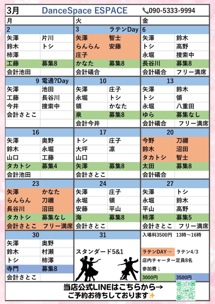 東京都杉並区にある社交ダンスホール-エスパス(ESPACE)のホームページです。【 TEL:090-5333-9994 】